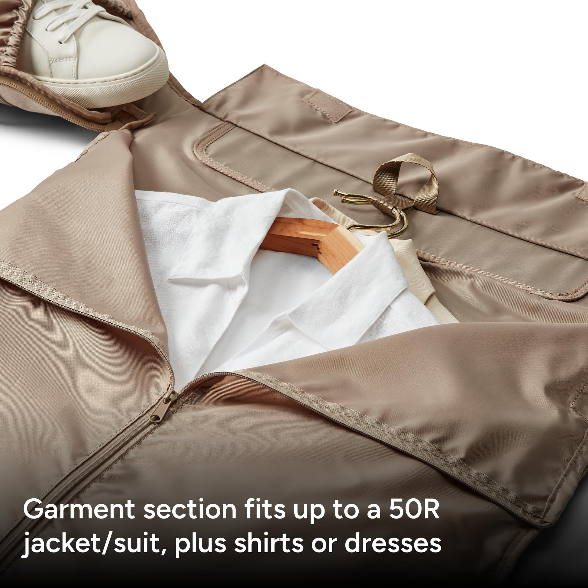- A transforming 2-in-1 duffel garment bag for long weekends, weddings, business trips, vacation getaways or even the gym.
